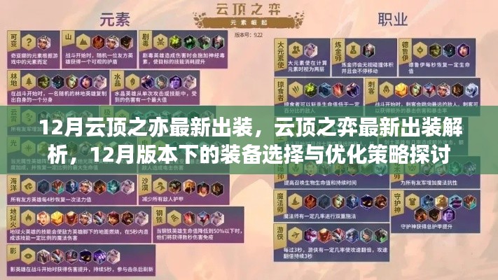 随着游戏版本的更迭,云顶之弈中的英雄出装策略也在不断变化,进入12月新版本后,众多玩家对于英雄的出装选择产生了新的思考,本文将针对当前版本下云顶之弈的最新出装策略进行深入探讨,旨在帮助玩家更好地理解装备搭配的重要性,并阐述个人的观点与立场。